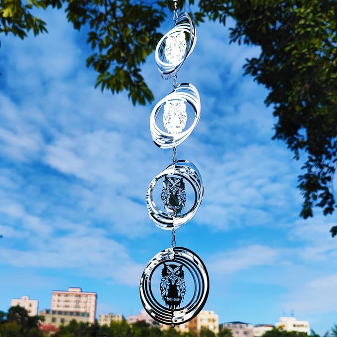 - Superior Unique Bird Reflectors: Our visual reflective ornamental Owl wind spinners uses wind motion and light reflections to keep birds away coming from any angle. Works for keeping away pigeons,woodpeckers,crows,hawks,seagulls,sparrows, grackles,herons, even squirrels and so on.
