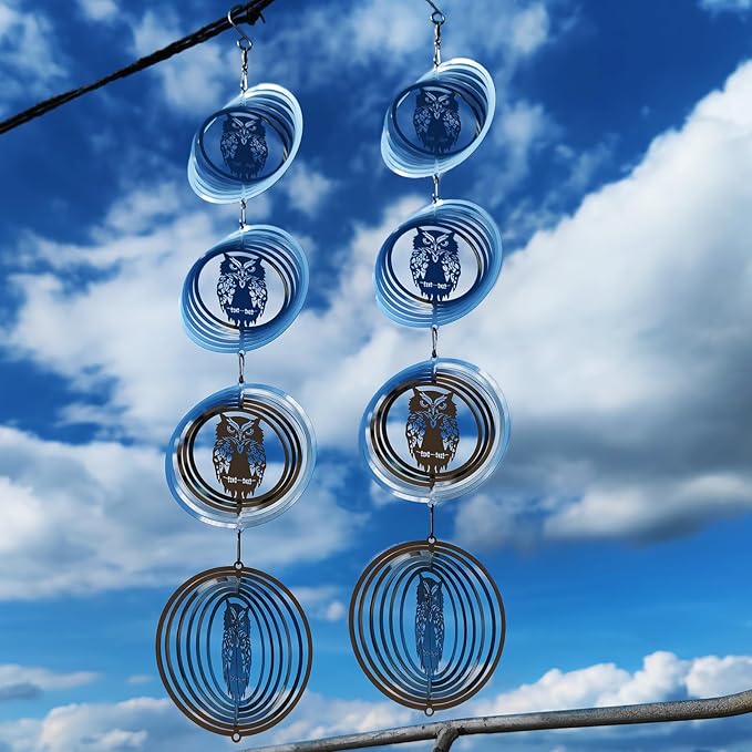 - These are 12 swivel hook and 12 Discs Owl Bird Scare of very shiny reflective matel wind spinners can rotate easily in the breeze, protect your garden, farm, and lawn by creating a bright flash that scares away birds.