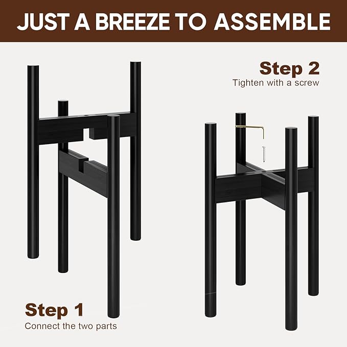 - 【Easy to Assemble】No extra complicated tools needed and easy to assemble; Just slot the 2 pieces together and tighten with screws to make the mid century plant stand firmer