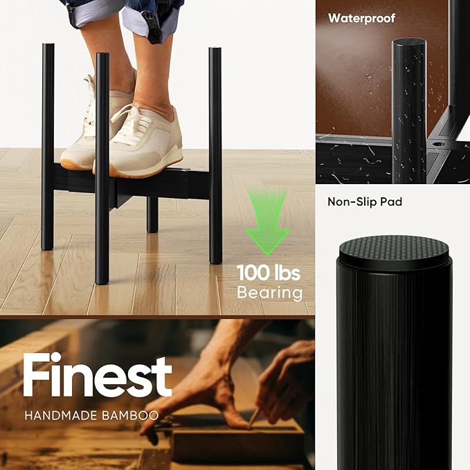 MUDEELA 2 Pack Adjustable Plant Stand Indoor, Bamboo Plant Stand 8 to 12 Inches, Single Floor Plant Stand for Indoor Plants, Bamboo Black Planter Stand for Indoor Plants, Pot Plant Not Included