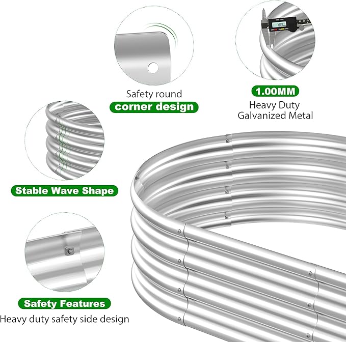 - 🍀Durable & Rust-Resistant Design - Constructed from high-quality thickened galvanized steel, this garden bed is double-layer galvanized for extra corrosion resistance. The oval structure enhances its visual appeal while providing additional stability, ensuring the garden bed remains secure and retains its shape over time.