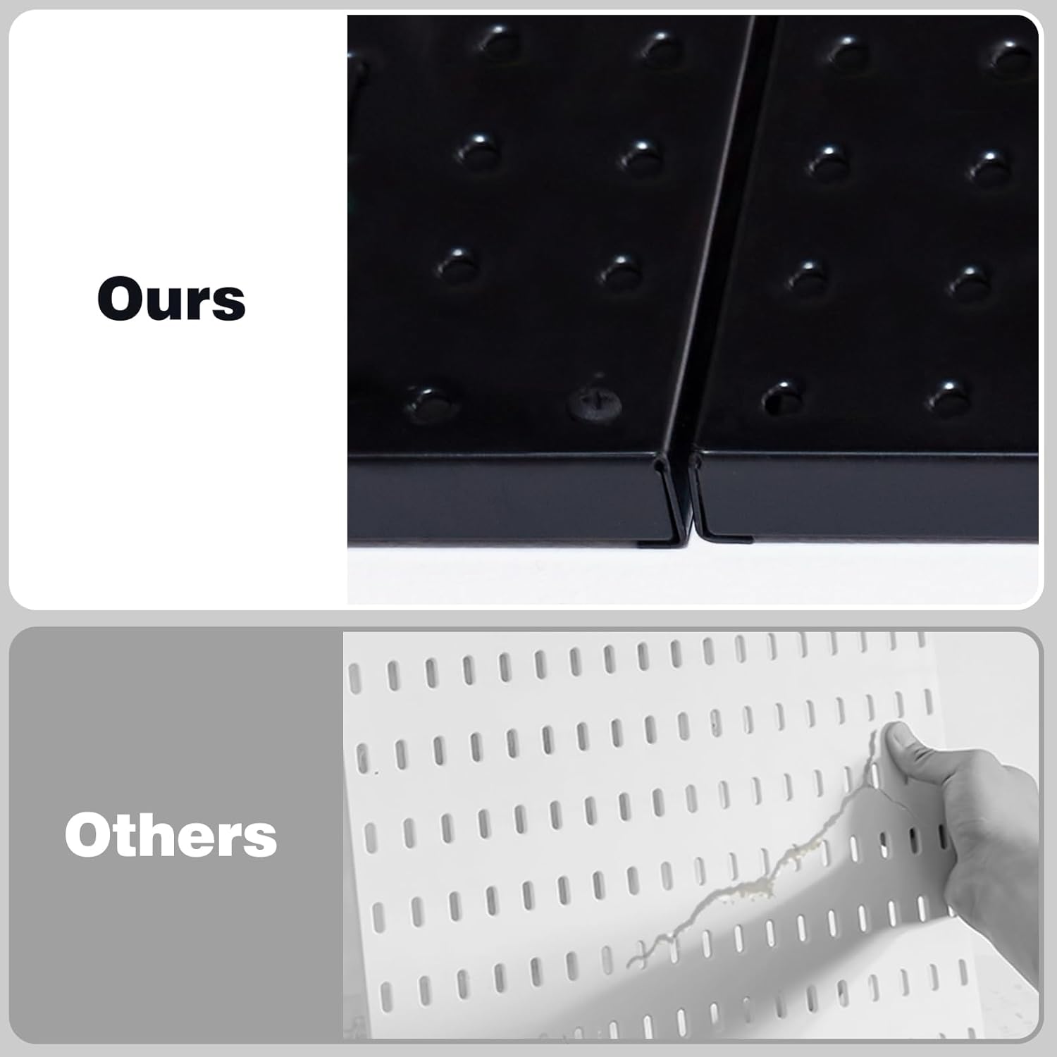 - Built for Durability: Invest in long-lasting storage with a rust-resistant, crack-proof, powder-coated pegboard. The folded edge design, maintaining a 1/2 inch thickness, protects your walls from scratches