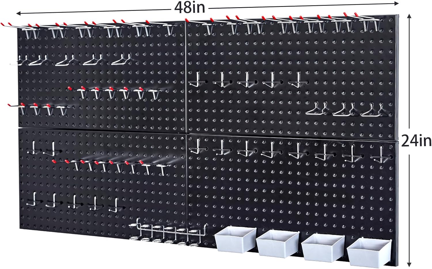 48x24 inch Black Metal Pegboard Kit for Wall Organization with Hooks, Garage Storage Bins, and Utility Tool Board, Efficient Tool Organizer Peg Board