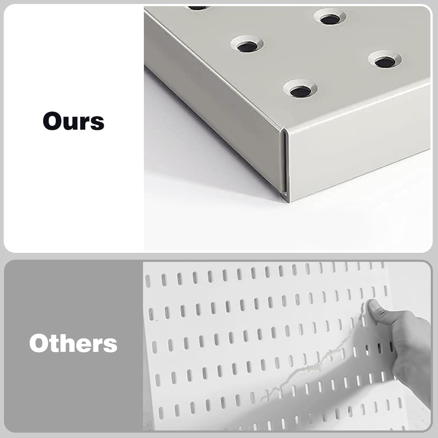 - Built for Durability: Invest in long-lasting storage with a rust-resistant, crack-proof, powder-coated pegboard. The folded edge design, maintaining a 1/2 inch thickness, protects your walls from scratches