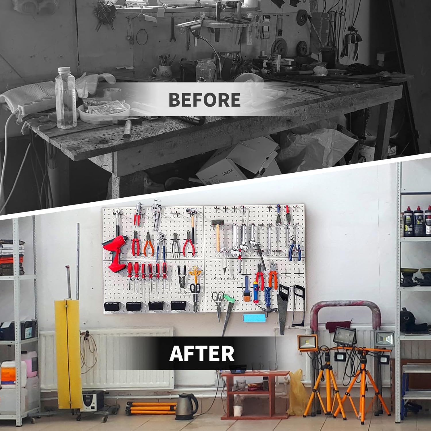 - Effortless Organization: Streamline your garage or workshop with the ultimate metal pegboard system, ensuring a tidy space for your utility tools