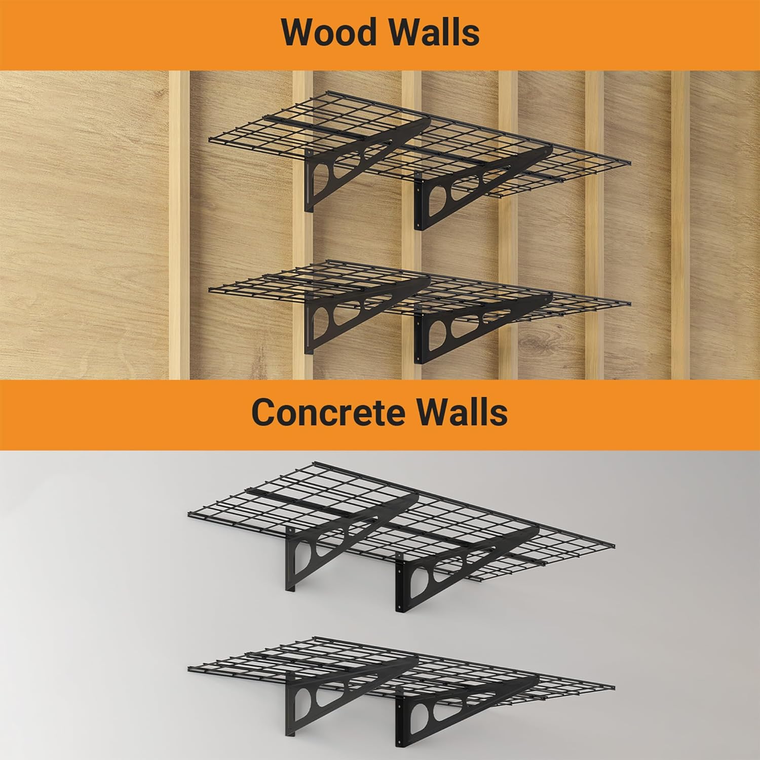 - Multi-functional Garage Wall Shelving: Made of durable, heavy-duty cold-rolled steel, this 2x4 ft garage shelf offers plenty of storage space for your garage, small pantry, or kitchen.
