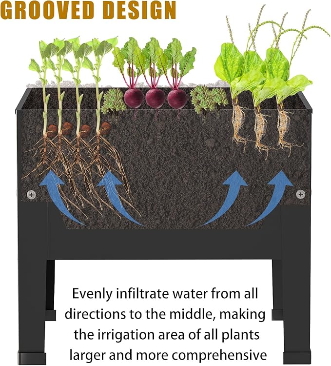 - IRRIGATION SYSTEM: The bottom of the raised garden bed has a middle groove type to allow water to penetrate evenly, ensuring that the plants get sufficient and reasonable watering.