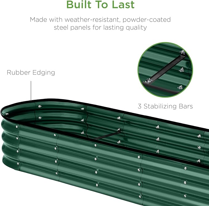 Best Choice Products 8x2x1ft Outdoor Metal Raised Garden Bed, Oval Deep Root Planter Box for Vegetables, Flowers, Herbs, and Succulents w/ 108 Gallon Capacity - Dark Green