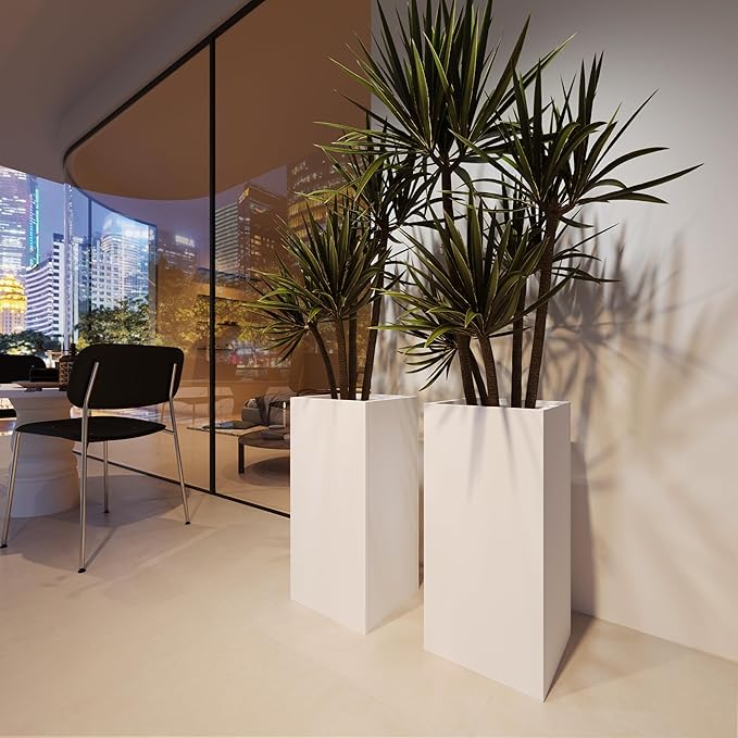 - WIDELY APPLICABLE - The White sleek metallic finish adds a touch of modern sophistication to any space, whether it's your garden, patio or living room.This steel rectangular flowerpot serves as a beautiful accent.