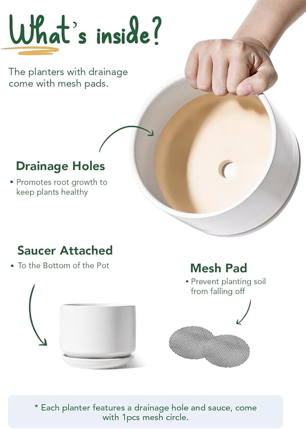 - Effortless Drainage: Each pot features drainage holes and a net that promotes healthy roots, preventing overwatering. The silicone plug lets you place ready-potted plants directly in the pots or plant in the soil (plants not included; saucer attached)