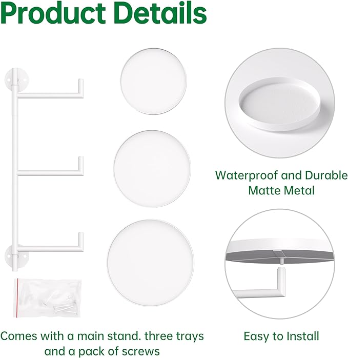 - Compared to other rotating plant stands, we offer a worry-free 180 rotation, an all-metal construction, and a partially integrated design, with the main components being 1x three-tier metal rod and 3x circular mounting pieces. This minimizes the hassle of complex installation for the window plant shelf.