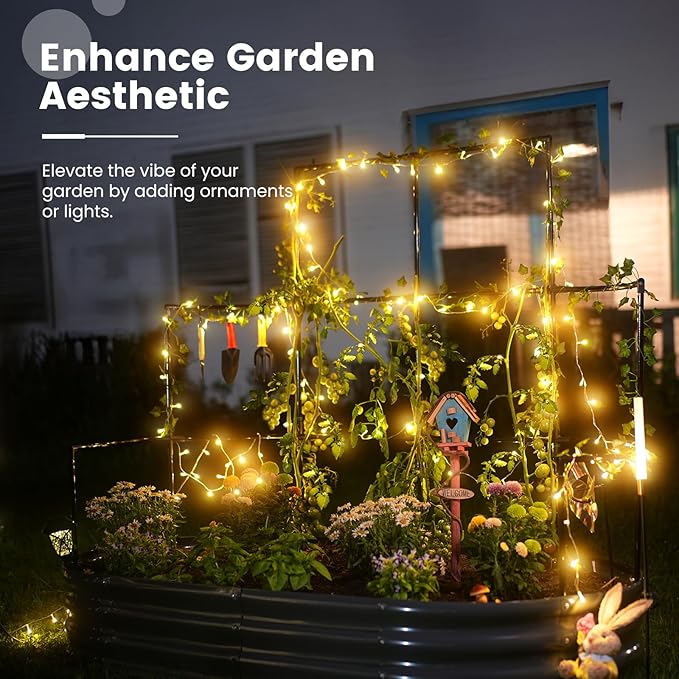 - 【Multifunctional Trellis】More than just a simple raised planter box, the trellis adds a realm of possibilities to your garden. You can hang small flower pots, decorations, and ambient lights on the trellis, or drape it with mesh or covers. As lush plants climb over the trellis, they also provide refreshing shade for your garden.