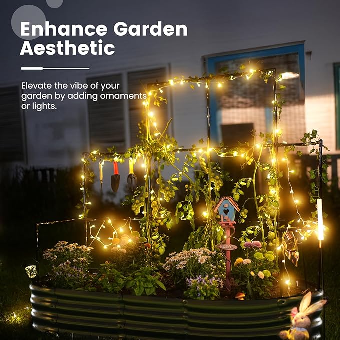 - 【Multifunctional Trellis】More than just a simple raised planter box, the trellis adds a realm of possibilities to your garden. You can hang small flower pots, decorations, and ambient lights on the trellis, or drape it with mesh or covers. As lush plants climb over the trellis, they also provide refreshing shade for your garden.