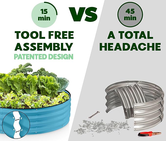 - EFFORTLESS ASSEMBLY, LIKE NO OTHER! Begin your planting journey by choosing our innovative patented design, featuring the perfect combination of easy assembly and durability. Thanks to our unique tool-free design, assembly is a breeze and can be completed in just 15 minutes! Get started on your garden right away and enjoy fresh, healthy produce in no time.