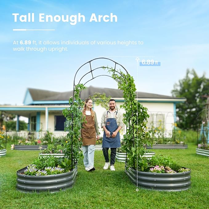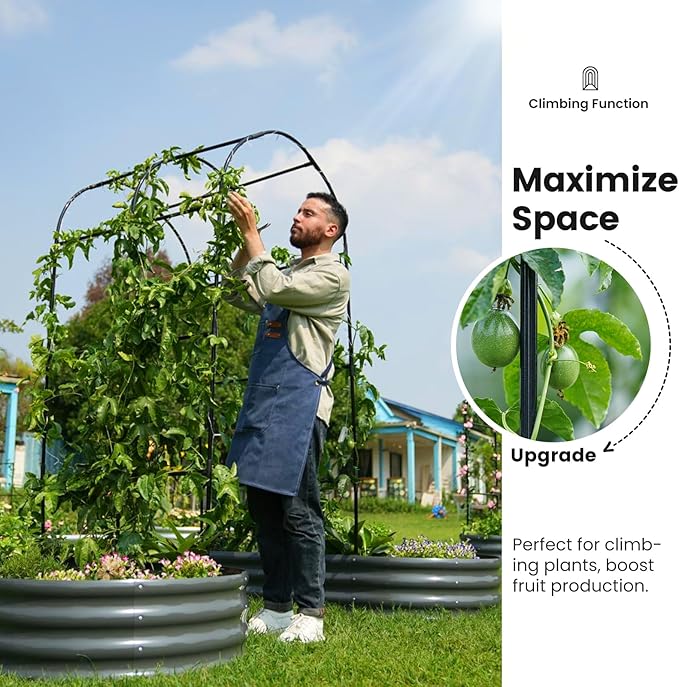 - 【Expanding Planting Space】Raised garden beds equipped with trellises are perfect for climbing plants, vines, and tall crops like cucumbers, tomatoes, and beans. Even in limited spaces, they support plants to reach their ideal heights. This helps you effectively utilize vertical space, allowing vines to thrive and boosting yields.
