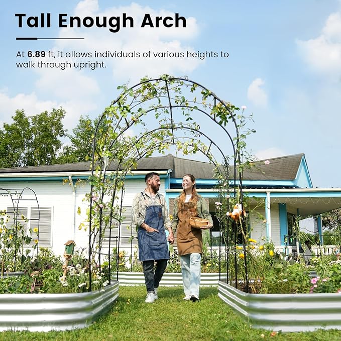 - 【Expanding Planting Space】Raised garden beds equipped with trellises are perfect for climbing plants, vines, and tall crops like cucumbers, tomatoes, and beans. Even in limited spaces, they support plants to reach their ideal heights. This helps you effectively utilize vertical space, allowing vines to thrive and boosting yields.