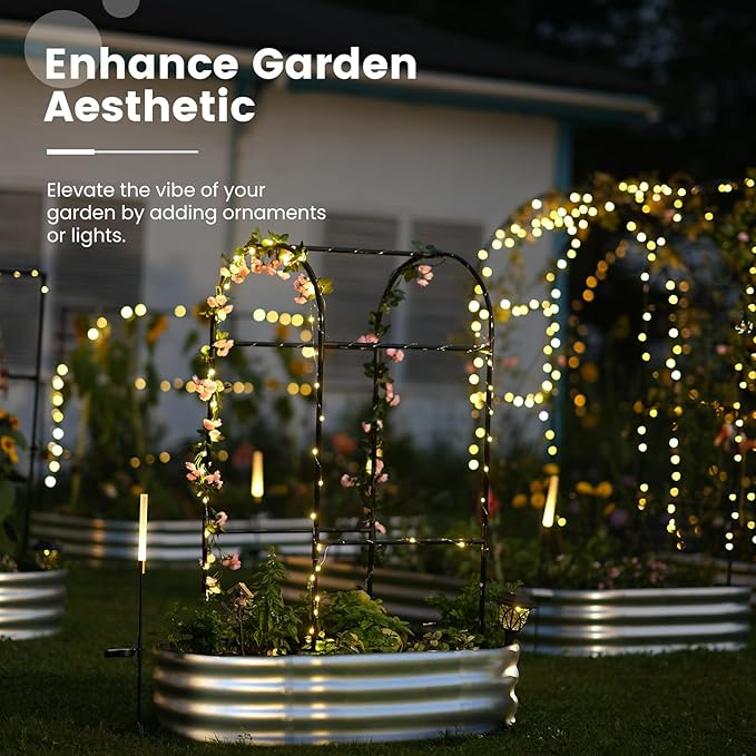 - 【Multifunctional Trellis】More than just a simple raised planter box, the trellis adds a realm of possibilities to your garden. You can hang small flower pots, decorations, and ambient lights on the trellis, or drape it with mesh or covers. As lush plants climb over the trellis, they also provide refreshing shade for your garden.