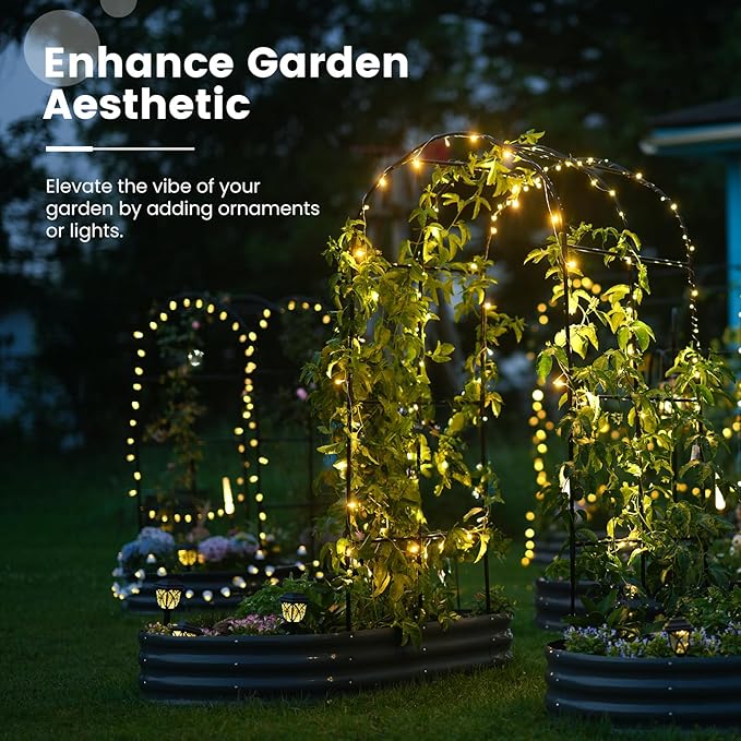 - 【Multifunctional Trellis】More than just a simple raised planter box, the trellis adds a realm of possibilities to your garden. You can hang small flower pots, decorations, and ambient lights on the trellis, or drape it with mesh or covers. As lush plants climb over the trellis, they also provide refreshing shade for your garden.
