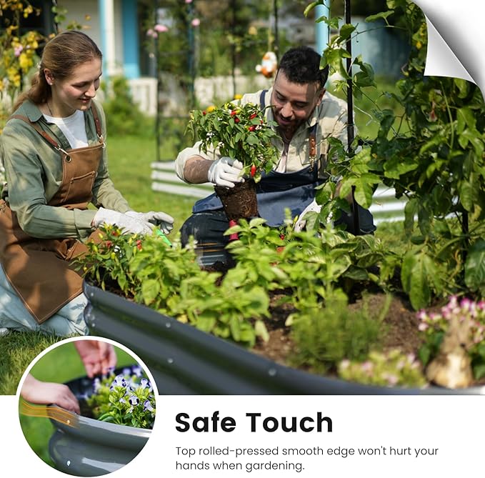 - 【Safe Rolled Edges】The edges of the metal planter raised beds are meticulously crafted with a rolled edge process, eliminating sharp edges to ensure your hands stay safe from cuts during assembly and planting, letting you safely enjoy the pleasure of gardening.