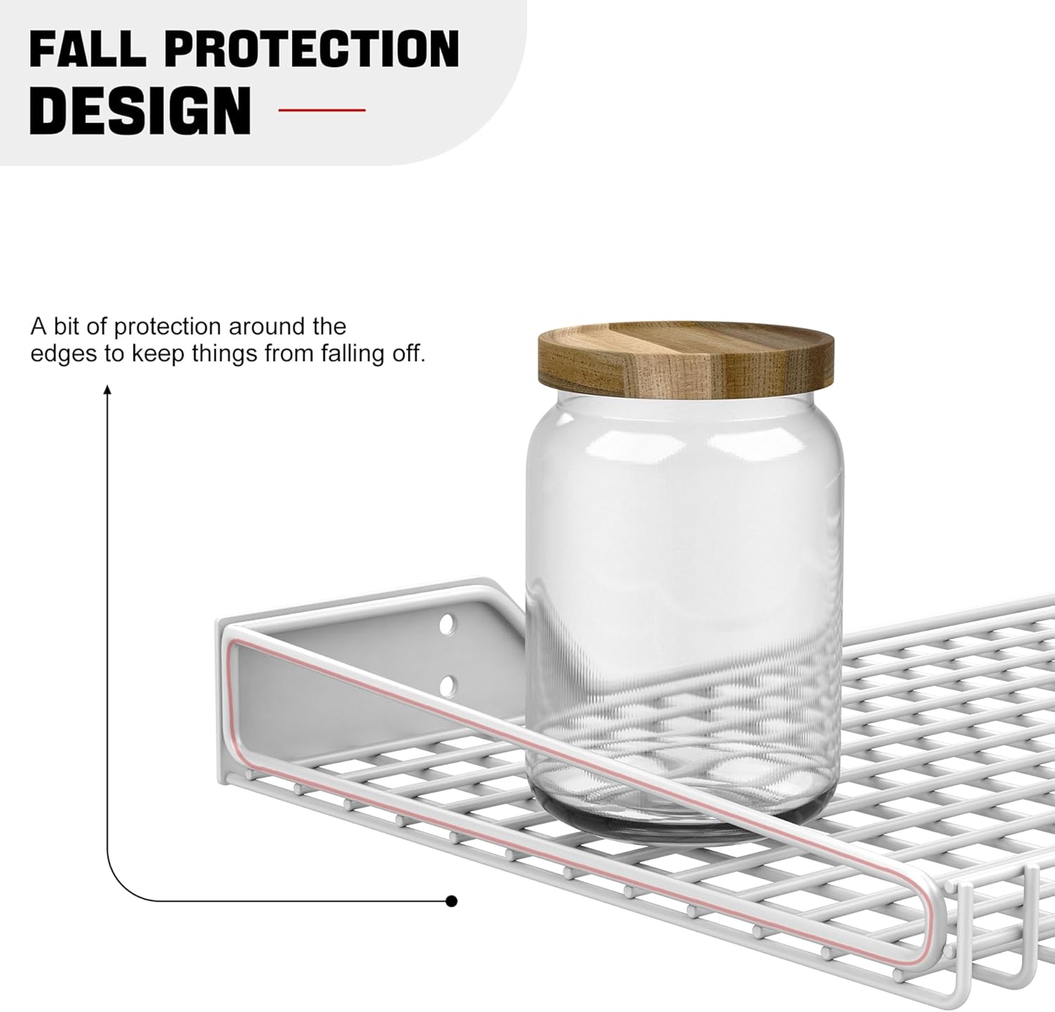 - Heavy-Duty Construction: Garage Shelving is constructed with high-quality materials, ensuring durability and stability. The heavy-duty design can bear a load capacity of 100 lbs for each wall shelf, making them ideal for storing bulky items such as power tools, paint cans, or gardening supplies