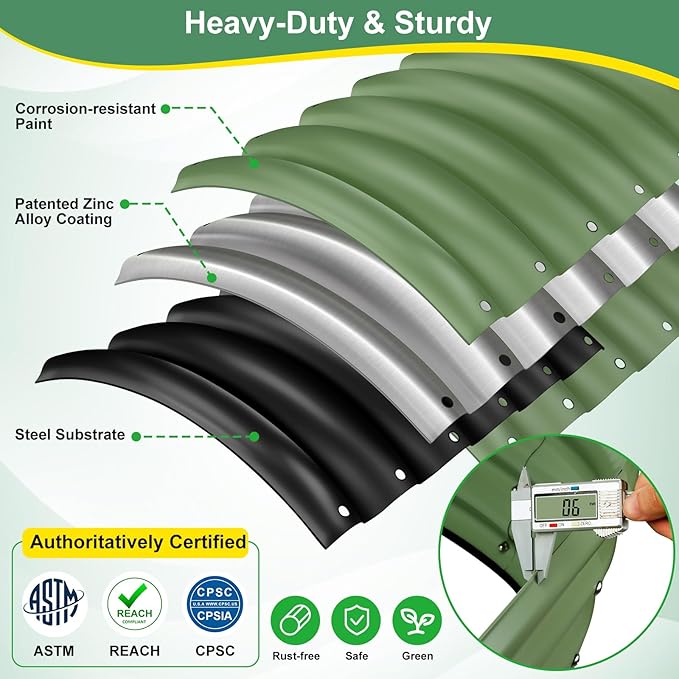- Long-lasting As You Wish: Unlike wooden alternatives, our raised bed for gardening was made from galvanized metal. A thickness of 0.78mm made it robust. And the included green metal Support ROD provides added stability, preventing any deformation of the garden bed.