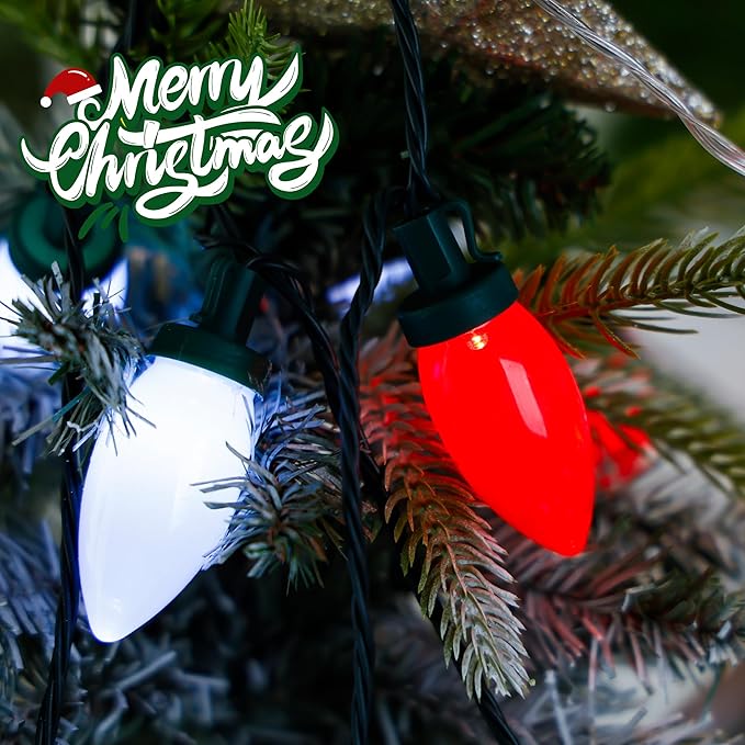 C9 Bulbs Classic Christmas Lights - 50 LED 32ft Strawberry String Light Red&White - Extendable 8 Modes Funtion with Timer Fairy Lighting for Outdoor, Indoor, Party, Home, Tree Decorations