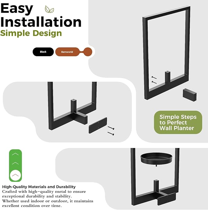 Bamworld Wall Planters for Indoor Plants Metal Wall Plant Holder Plant Hanger Wall Decor Wall-Mounted Wall Hanging Planters Outdoor Plant Rack Black 2 Pack (Patent Design)