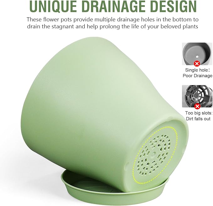 - 【Drainage Holes and Trays】Each plant pot features well-designed drainage holes at the bottom to ensure proper water flow. Additionally, saucers catch excess water, keeping your growing area clean and tidy while also ensuring that your plants remain hydrated without becoming waterlogged.