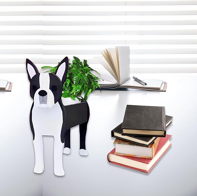 Boston Dog Planter Plant Pots,Cute Garden Dog Flower Planter,Dog Planters Birthday Gifts for Women,Office,Indoor/Outdoor Decor(9.45 * 6.73 * 13.39in)