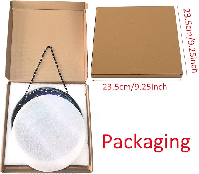 - 【Product Size】Stained glass window hanging size is 20*20cm/7.87*7.87inch,equipped a chain,the size is 34cm/13.4inch. You can hang it anywhere you want, balcony, window or courtyard. Stained glass decor capture sunlight and add vitality and color to your home.