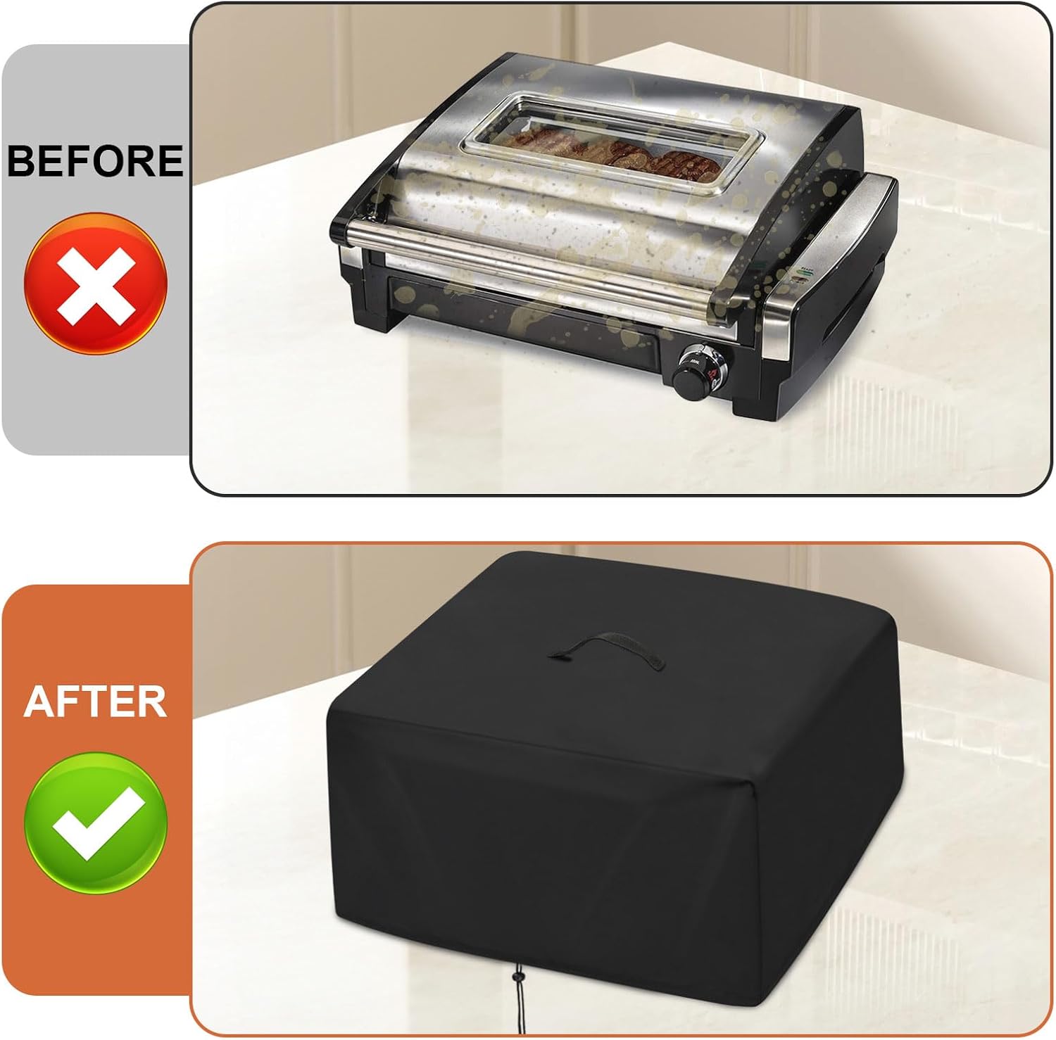- 420D Oxford Fabric: Electric indoor grill cover is made of 420D high-quality and high-density oxford fabric, with PU silver-plated undercoating and double stitches sewing. Which is waterproof, tear resistant and fade resistant