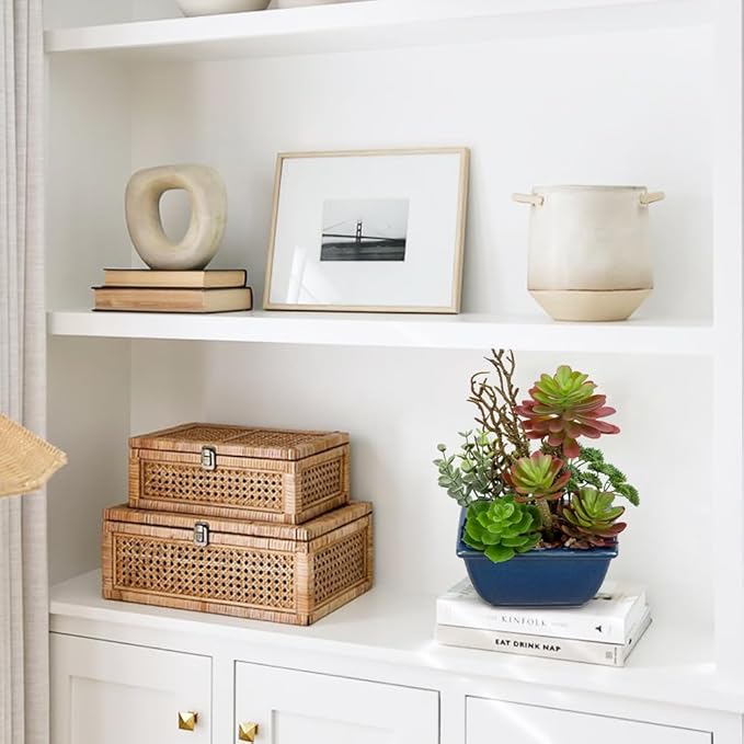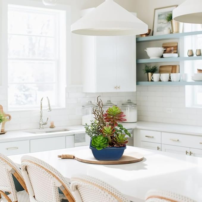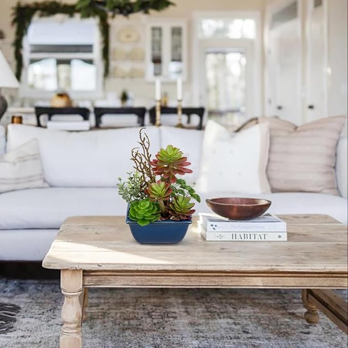 - Artificial succulents in pots subtly enlighten indoor decor with their bright color, potted plants artificial decor are unique in their own way which makes them look like a real succulent decor exhibition. Artificial potted plants decor: Small fake succulents are perfect for home, office desk, bedroom, bathroom shelf, kitchen, apartment, cafe, etc, faux plants in pots will add a natural accent to your home decor.