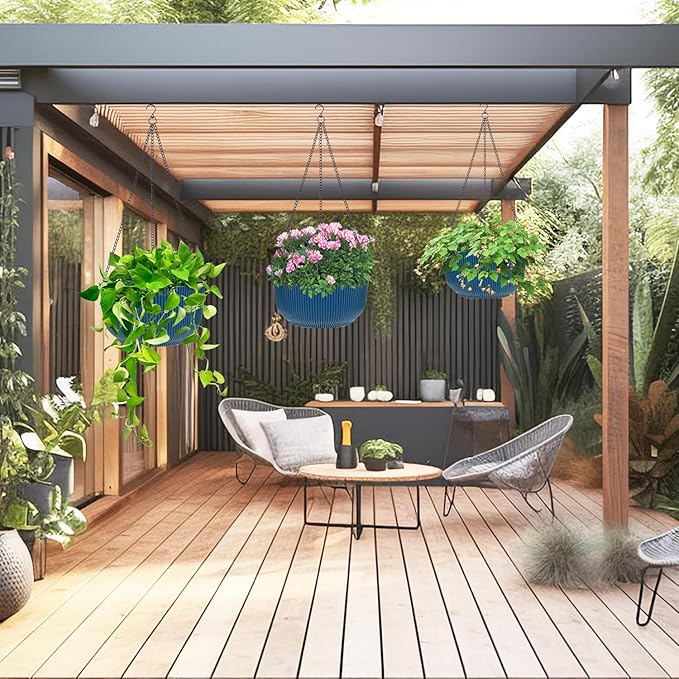 - High Quality Pot:The hanging planters's sidewalls are made of thick high-quality plastic, with three rust-resistant metal chain and hook, strong and durable