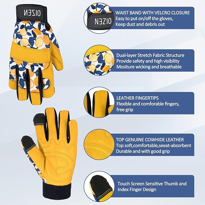 - Crafted for Durability: This gardening glove is made of carefully selected grain cowhide to ensure abrasion resistance, which is not only thick but also soft and flexible with moderate oil resistance, puncture resistance and cut resistance. The back of the hand is made of elastic, breathable and sweat-absorbing material, which can keep our hands dry and easily complete all works in the garden.