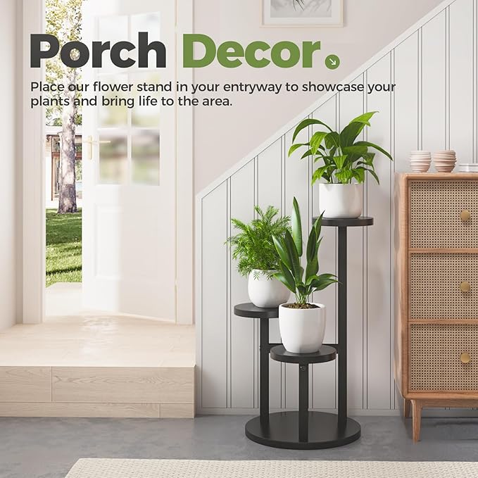 Bamworld 3 Tier Plant Stand Indoor Small Plant Shelf Outdoor Metal Tall Flower Holder Table Support Rack Garden Accessories for Plant Lovers(Black)