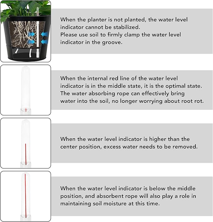 - WATER LEVEL INDICATOR: No need to guess when to water your plants - the built-in indicator shows the water level at a glance. Monitor your plants' water needs with the convenient water level indicator, ensuring they stay properly hydrated