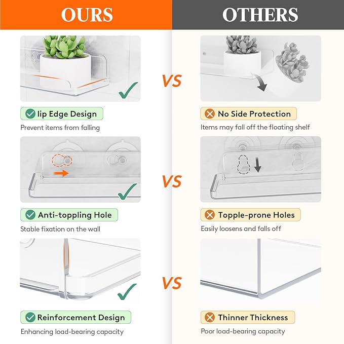 - Special Feature : Fully transparent, suitable for plant growth and display, no need to punch holes, suction cup installation Recommended Uses For Product: Indoor Plants, bathroom storage, kitchen spice rack, displaying items like record albums, photo frames, toys Fully transparent, suitable for plant growth and display, no need to punch holes, suction cup installation Recommended Uses For Product: Indoor Plants, bathroo… See more