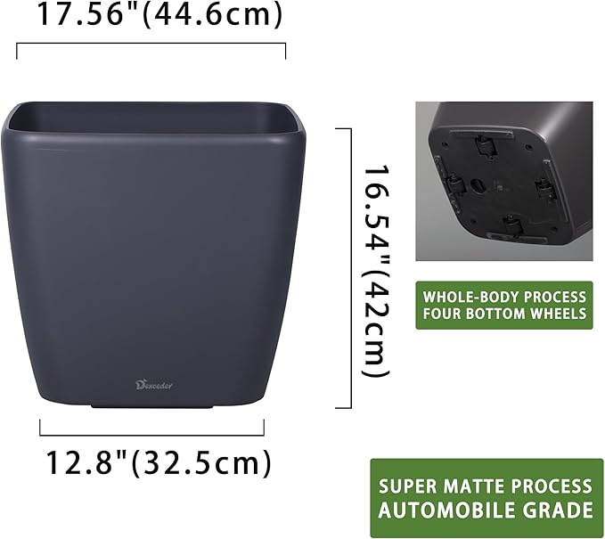 Dexceder 18x17 Self Watering Planter with Wheels Indoor Outdoor, Inner Mat Design, Thickened Large Floor Standing Flower Plant Pot with Water Level Indicator (Slate Gray Matte)