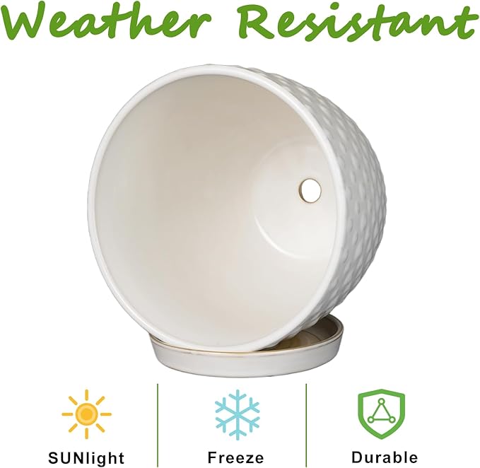 - Ideal Size: Each ceramic flower pot is 7 D x 6.5 H, which can provide enough space for your plants to thrive. One package includes ceramic planter, ceramic tray and mesh