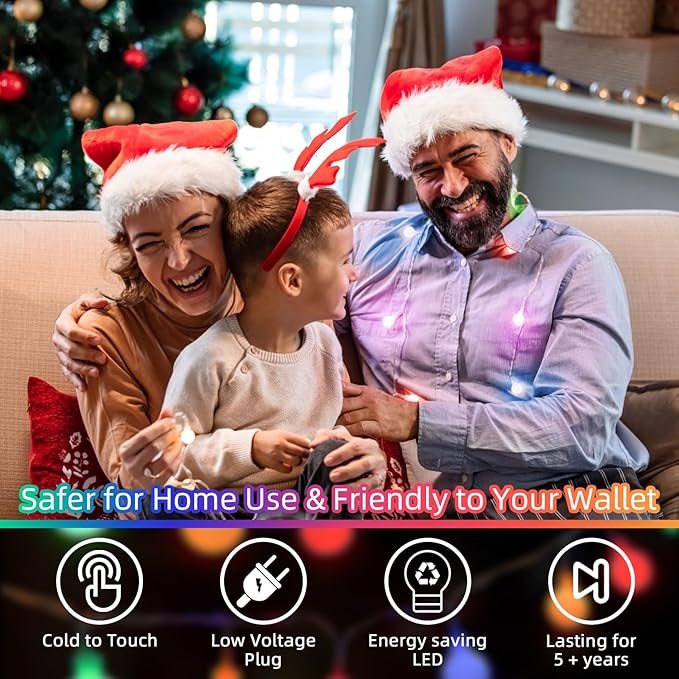 - Christmas Lights & Energy-efficient: Our LED Christmas lights offer a safe lighting solution for your holiday decor, especially when it comes to their soft and gentle glow. The decorative lights are designed with energy-efficient LED bulbs, consuming less electricity and lasting longer than traditional lighting options. They're an eco-friendly choice for your Christmas decorations.