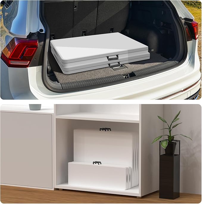 - Folding & Hiding: This picnic table featuring a foldable design, the total weight of the table is about 26 pounds, and an adult can complete the installation independently, and when not in use, he can be easily folded and stored to save space