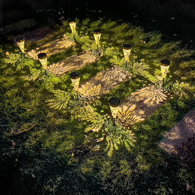 - 【Hummingbird Decor】Profinella's metal pathway lights feature intricate cut-out patterns that project lifelike images of three hummingbirds, transforming your garden, lawn, and outdoor spaces into enchanting nighttime scenes.