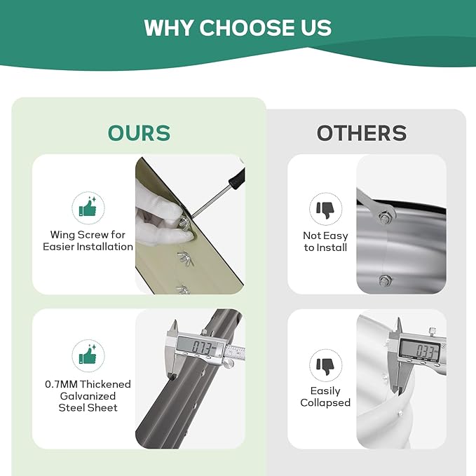 - 【 Durable and Long-lasting 】 BIRDSINYARD outdoor raised garden bed is made from 0.6mm thick galvanized steel,featuring a rust-resistant and corrosion-resistant coating.Garden planter effectively withstands humid weather and harsh conditions, ensuring it won't easily warp or rust with long-term use.