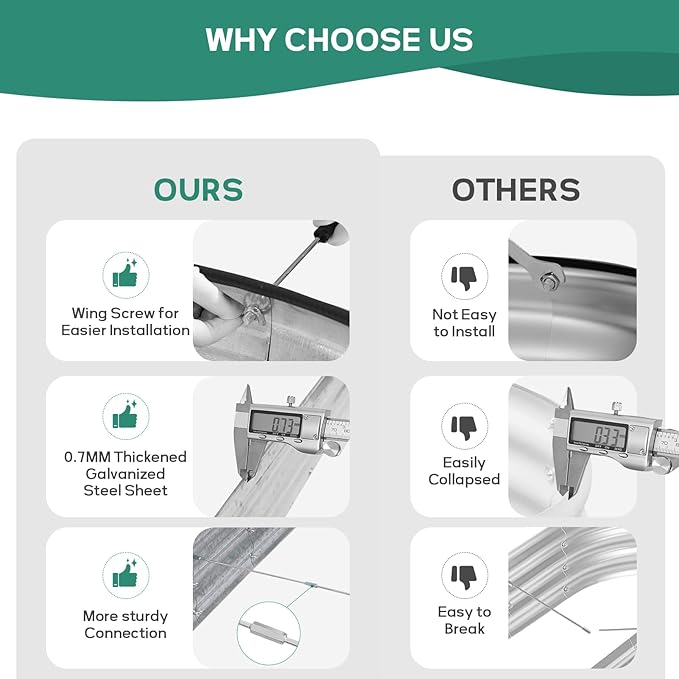 - 【 Easy Assembly 】Our metal raised garden bed is simple and easy to install. According to the detailed instructions and installation tools we provide, you can easily assemble your garden box and start planting with just a few simple steps and little time.