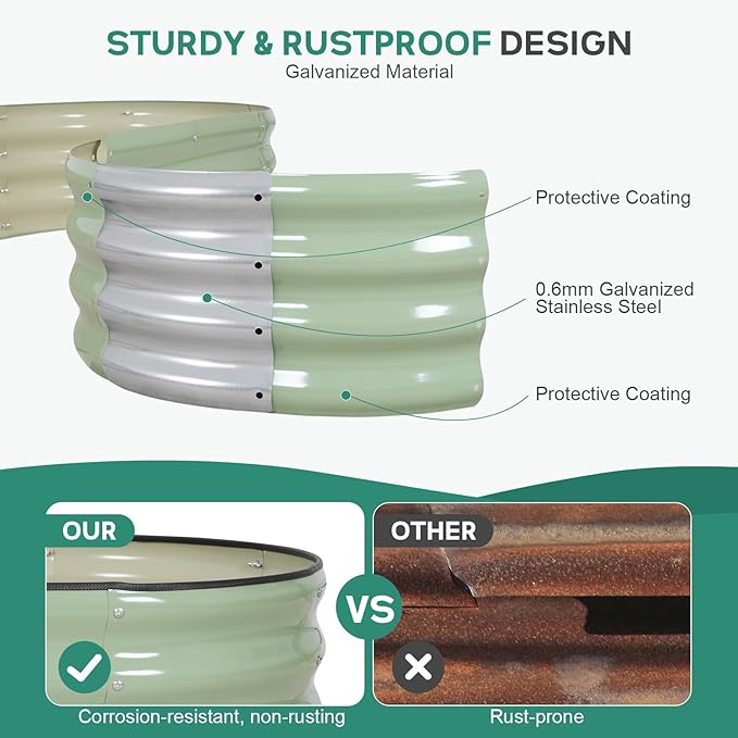 - 【 Durable and Long-lasting 】The BIRDSINYARD raised garden bed, available in a convenient two-pack, is constructed from 0.7mm thick galvanized steel. It features a rust-resistant and corrosion-resistant coating, ensuring it can withstand humid weather and tough conditions without warping or rusting, even with long-term use.