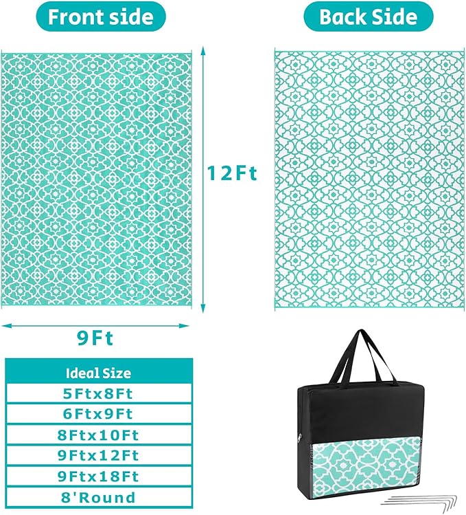 - Versatile Outdoor Carpet: The indoor outdoor plastic rugs have multiple choice in different colors(4'x6',5'x8',6'x9',8'x10',9'x12',9'x18',8'round), is ideal for a variety of indoor outdoor activities,like patio mat, deck rug, garden rug, beach mat, picnic mat, BBQ party mat, rv camping rug,pool rug,outdoor doormat,garage rug,front door mat,allowing you to have plenty of imaginable space for more fun.