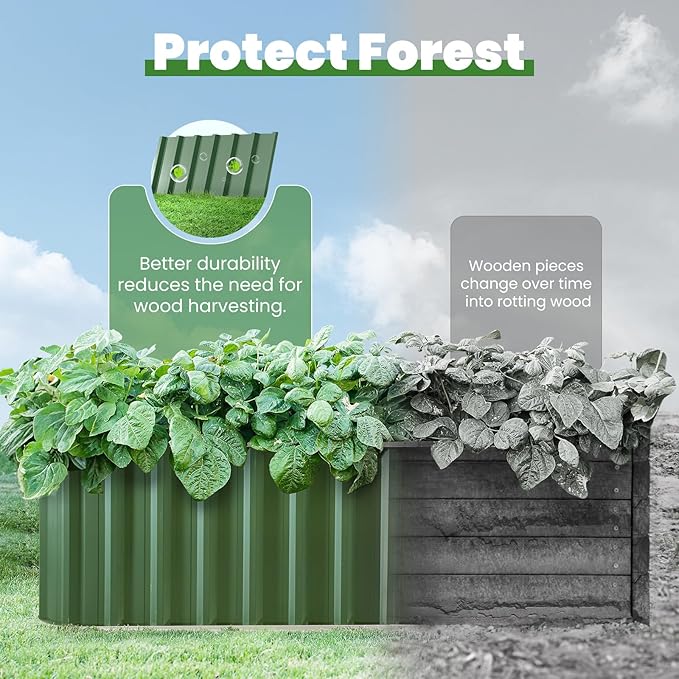 - 【No Sharp Corners & Contrasting Colors】Experience the perfect blend of safety and style with our raised garden bed, featuring smooth, rounded edges that eliminate sharp corners. The widened top not only enhances safety but also elevates the visual appeal with its contrasting color design. Transform your garden into a vibrant and secure haven.