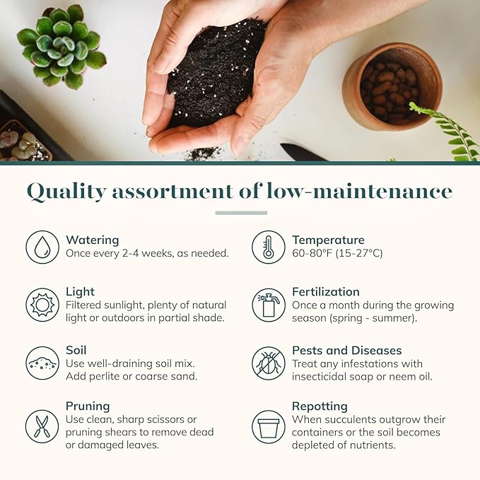 - Adaptation Across Seasons: Please note that succulent plants' appearances can vary throughout the year due to natural growth patterns and changing seasons. This characteristic ensures an ever-evolving display, allowing you to enjoy a unique garden experience throughout the year.