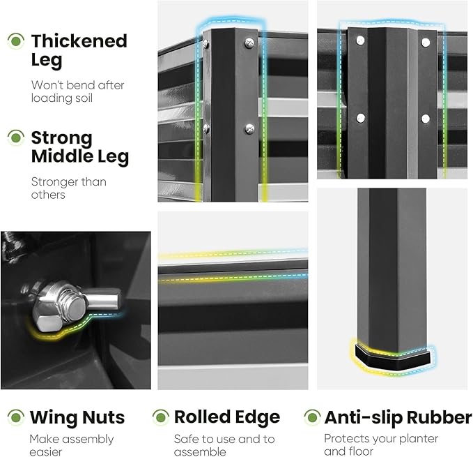 - 【Sturdy & Durable, Capacity: 600 lbs】Our galvanized steel planter raised bed is rust-resistant, sturdy, and can support up to 600 lbs. More durable than wooden raised garden bed kit, it ensures a longer lifespan without the worry of cracking or warping.