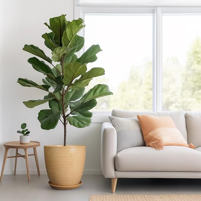 Ceramic Plant Pot 12 Inch - Large Planter for Indoor Plants Outdoor Flower Pot with Drainage Hole and Saucer Round Decorative Planter for Home Patio Garden Balcony Yellow